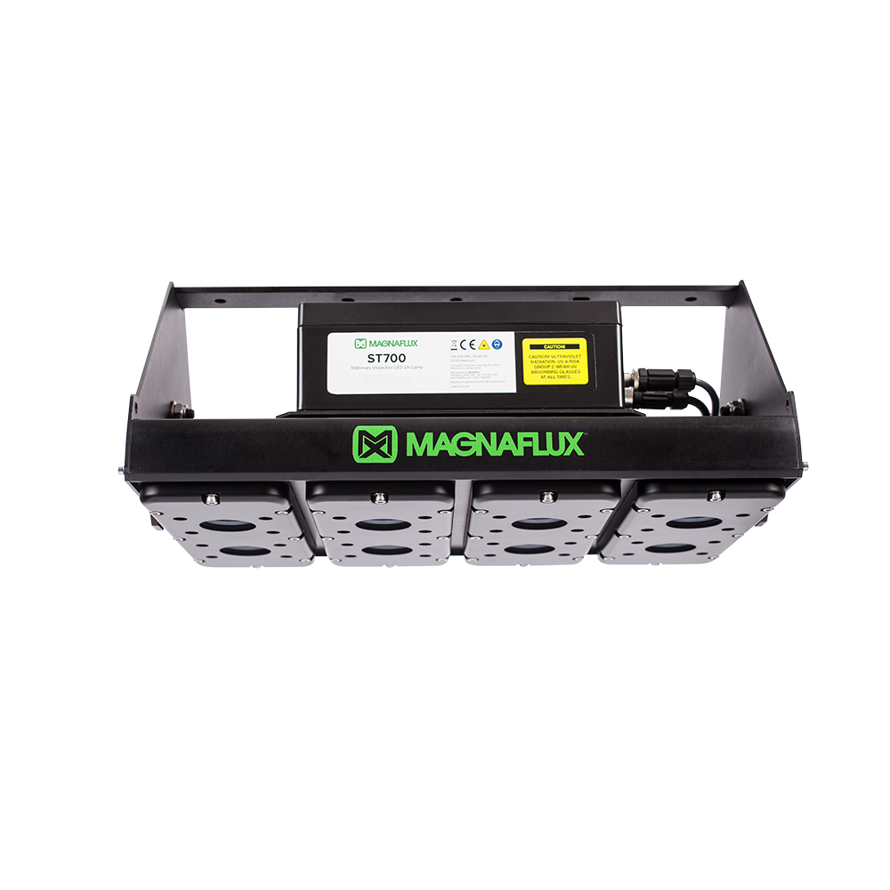 The ST700 is an inspection-grade overhead LED UV flood lamp with high-intensity UV-A illumination for nondestructive testing examinations such as fluorescent penetrant and magnetic particle testing.