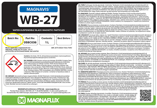 Each batch of product manufactured and supplied by Magnaflux EMEA carries a unique batch number. For bulk products, the batch number consists of seven digits. For aerosol products, the batch number consists of six digits. In both cases, the first two digits represent the year of manufacture (for example, 15 = 2015) and the third and fourth digits give the month of manufacture (for example, 07 = July).